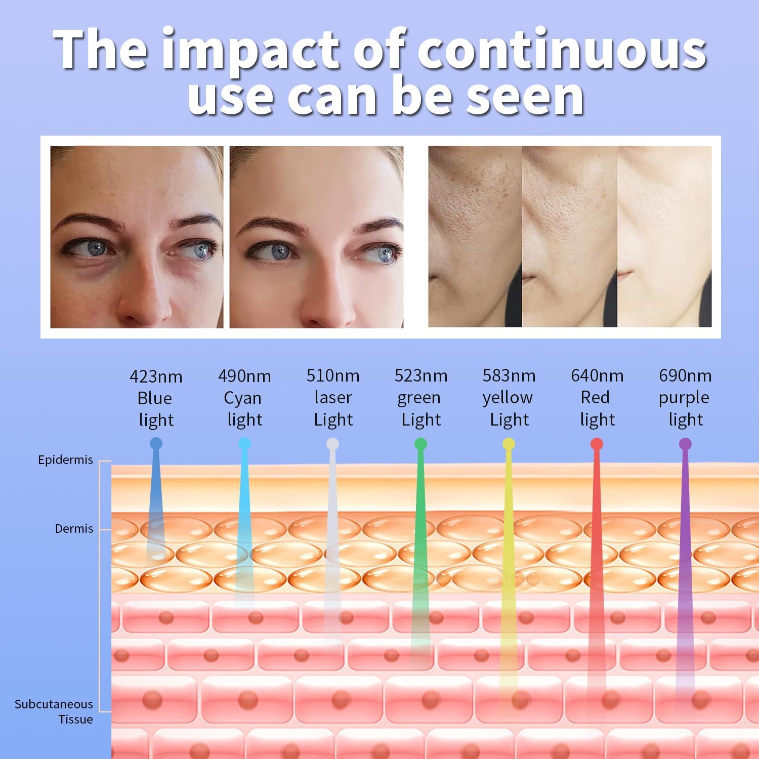 Purple (360–430nm): Enhances skin vitality and reduces inflammation.